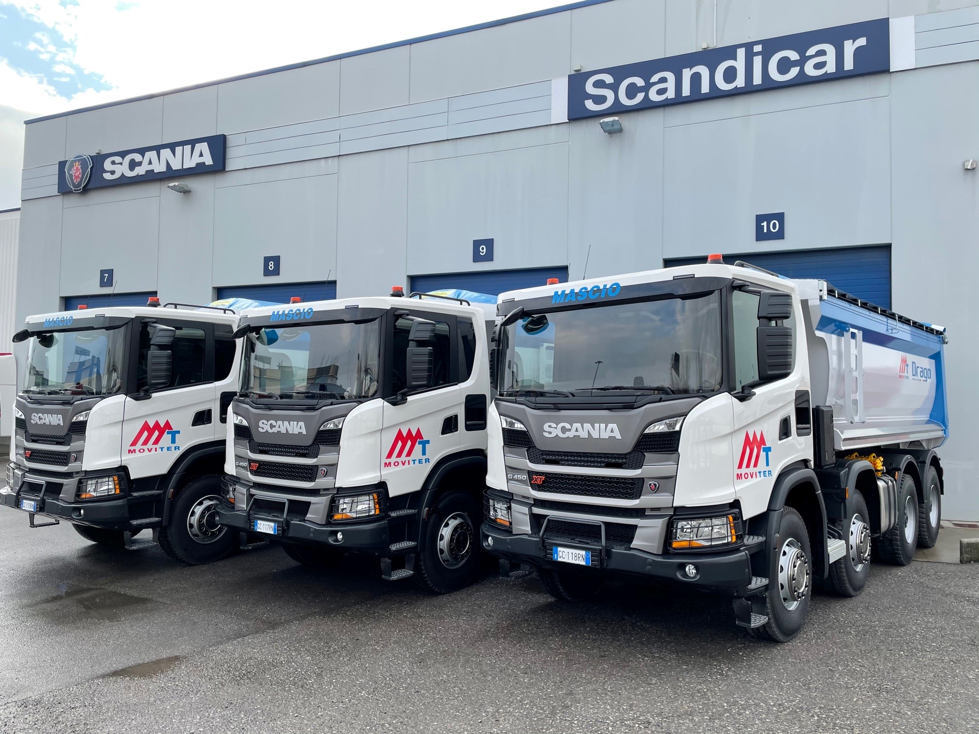 I veicoli oggetto della fornitura sono 10 trattori R500 per il trasporto di inerti e 6 mezzi d’opera, G450 8×4. Il Gruppo Mascio con i suoi brand Moviter, Traspoter e Beton Trasporti, dal 1998 si occupa di movimentazione terra, calcestruzzi e materiali e del trasporto conto terzi. L’azienda da sempre pone particolare attenzione nei riguardi dell’impatto ambientale, oggi la propria flotta è costituita esclusivamente da veicoli di ultima generazione, tutti Euro6.