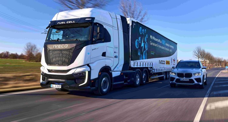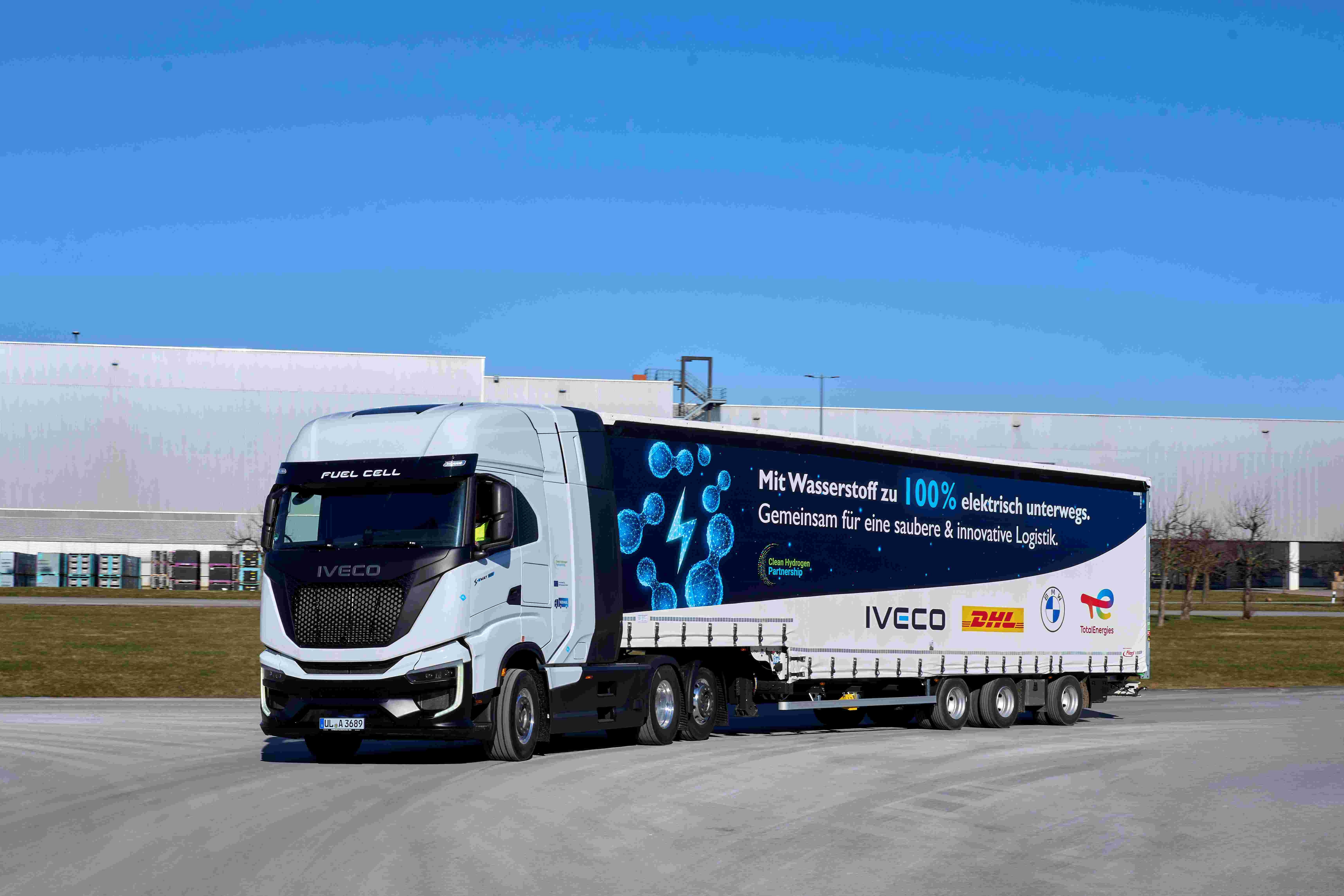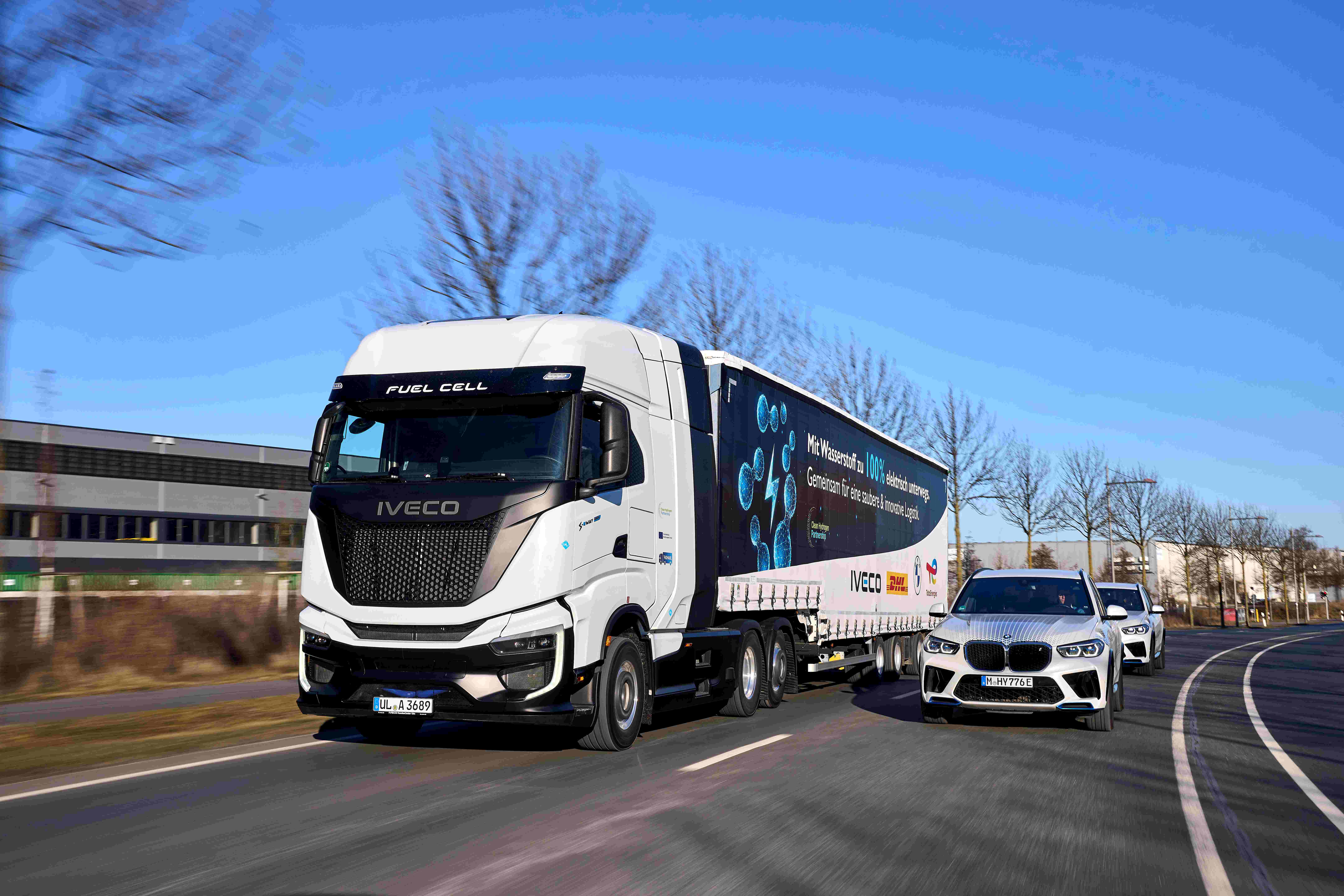 I due IVECO S-eWay Fuel Cell consegnati a BMW fanno parte di una flotta di 12 mezzi pesanti a idrogeno che verranno distribuiti in Germania, Francia e Svizzera per dimostrare la fattibilità dei veicoli a celle a combustibile a idrogeno.
