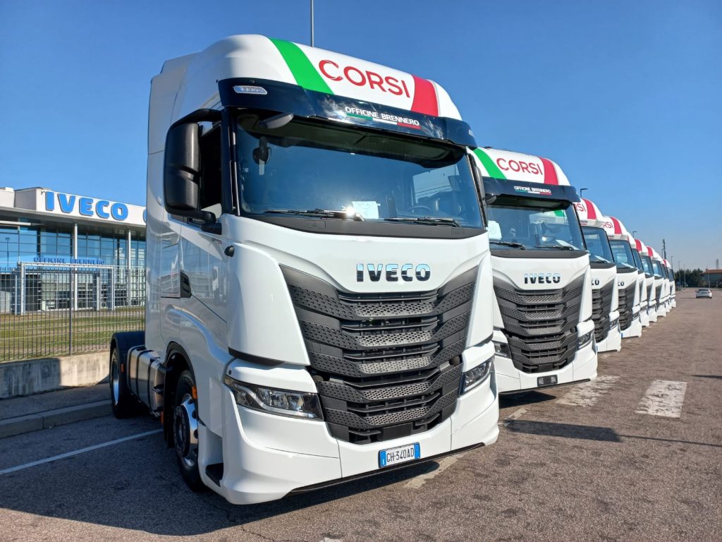 La cerimonia di consegna dei 60 IVECO S-Way si è svolta a Verona presso la sede aziendale della Corsi. Presenti alla fatidica consegna delle chiavi: Francesco Corsi, Titolare dell’azienda omonima, Diego Moreschi, Responsabile Gamma Pesanti Officine Brennero, Mario Baruffi, Area Manager IVECO Mercato Italia.