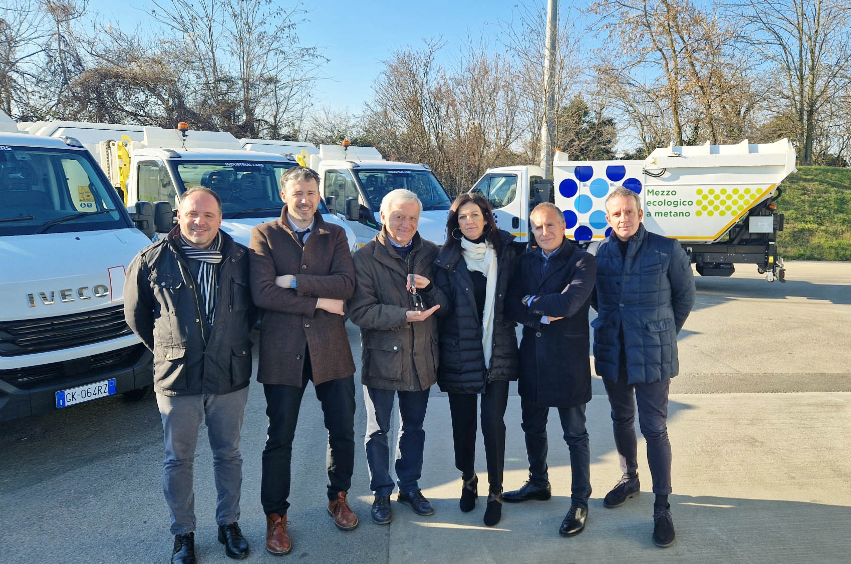 Da sinistra in fofo: Alessandro Sandel, resp div operativa di Contarina; Andrea Favalessa, vicedirettore Contarina; Sergio Baldin, presidente Contarina; Antonella Ceccato, AD Industrial Cars; Massimo Revetria, resp gamma leggera IVECO Mercato Italia; David Cabrelli, resp comm.le Industrial Cars