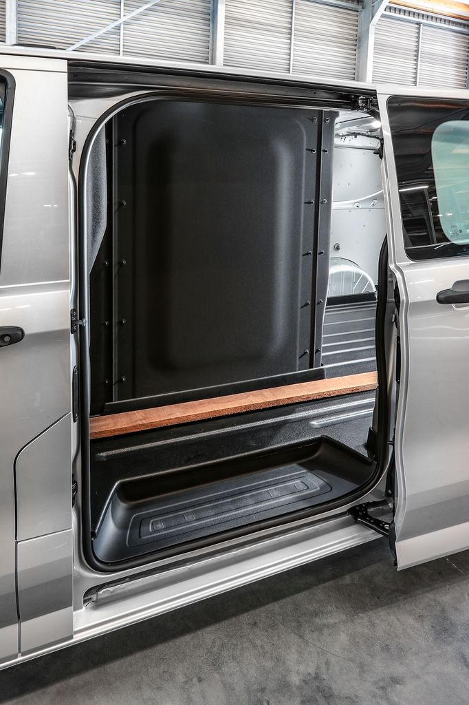 La versione con parete divisoria a L introduce una nuova configurazione che consente di trasportare oggetti lunghi mantenendo separati i passeggeri dal vano di carico. Ha due porte scorrevoli e può essere personalizzata con sedili aggiuntivi.