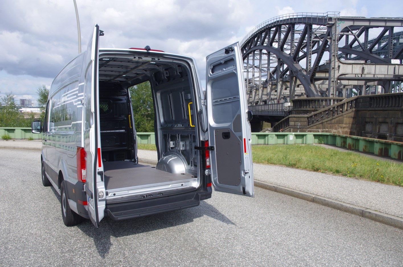 L’e-Crafter è stato sviluppato parallelamente ai modelli con motori Diesel Euro 6 (TDI), sfruttando l’architettura di questi ultimi per l’integrazione delle componenti elettriche. La batteria agli ioni di litio, ad esempio, viene alloggiata nel sottoscocca a fronte di un minimo ingombro e a tutto vantaggio della capacità di carico: 10,7 m3 per il modello a tetto alto (altezza 2.590 mm). Lo stesso vale per altre importanti misure, quali la larghezza (1.380 mm) e l’altezza di carico (1.861 mm). Il carico utile massimo è compreso tra 0,975 e 1,72 tonnellate a seconda della configurazione scelta.