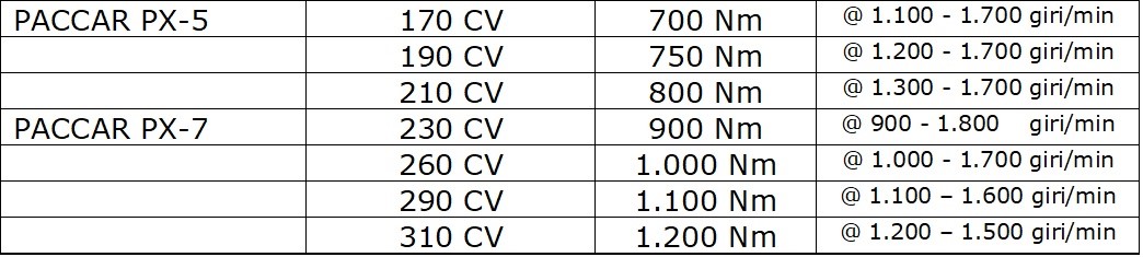 I nuovi motori sviluppano una coppia massima a regimi bassi, supportando la riduzione del numero di giri, per garantire in tal modo un’efficienza dei consumi di carburante ai vertici della categoria. I motori PACCAR PX-5 e PX-7 sono predisposti per l’uso dell’HVO, riducendo fino al 90% le emissioni di CO2.