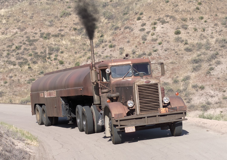 In foto d’apertura la “terribile” cisterna Peterbilt 281 del film Duel, diretto da Steven Spielberg nel 1971, mentre rilascia nell’atmosfera enormi quantità di CO2!