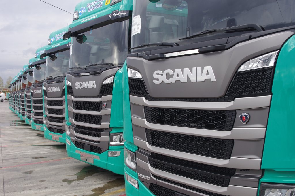 La consegna dei 12 trattori stradali diesel è avvenuta presso la sede aziendale a Contrada Sommese, in provincia di Napoli 12 Scania R500 in livrea