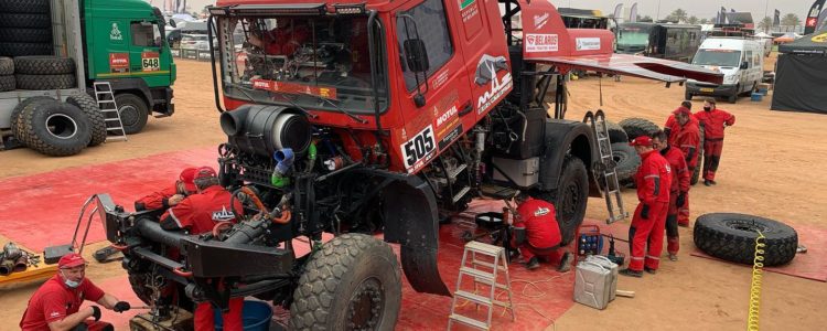 Ad Ha’il si ferma la Dakar per riprendere fiato. Dopo questa notte si riparte a scapicollo verso la seconda parte della grande avventura Riposo per modo di dire. Infatti in queste ore di pausa i concorrenti lavorano febbrilmente per riparare i danni e le avarie dei mezzi dopo i primi durissimi sei giorni di gara. Officine meccaniche “da viaggio”, attrezzi