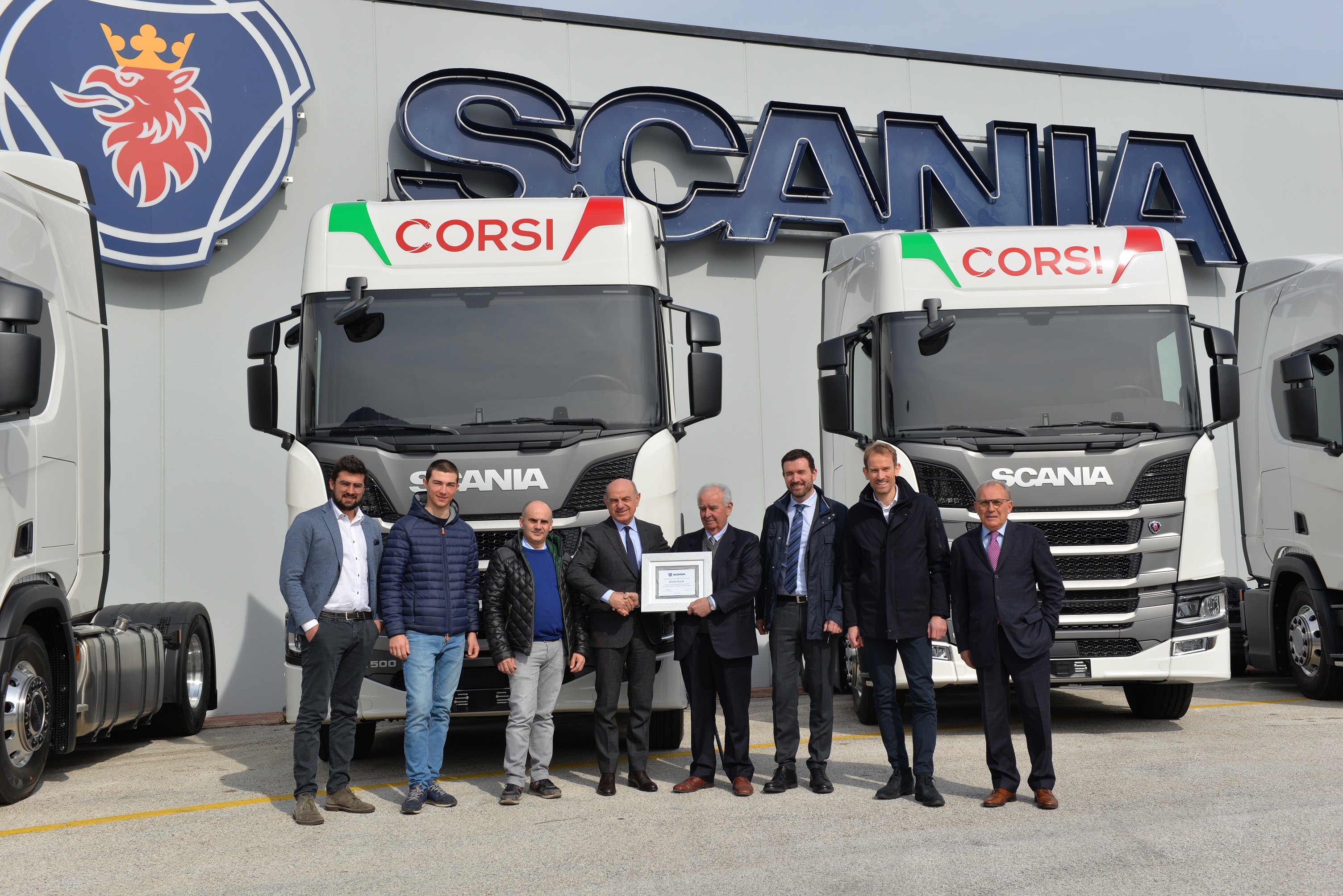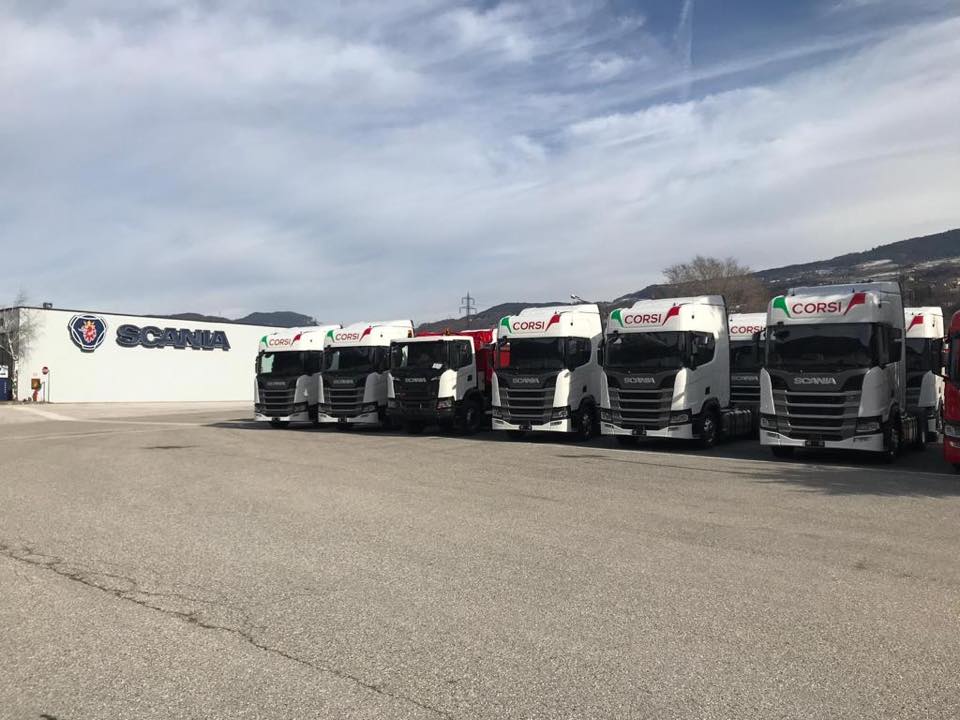 Oggi la Corsi SpA è un’azienda moderna ed efficiente con una flotta composta da oltre 100 trattori stradali e altrettante casse frigo per il trasporto a temperatura controllata. Il recente acquisto, guidato dalla concessionaria Scania “Rangoni & Affini” è avvenuto dopo un’attenta valutazione dei veicoli Scania di nuova generazione. L’affidabilità ed i consumi ridotti sono tra i motivi che hanno convinto la famiglia Corsi a scegliere i truck Scania.