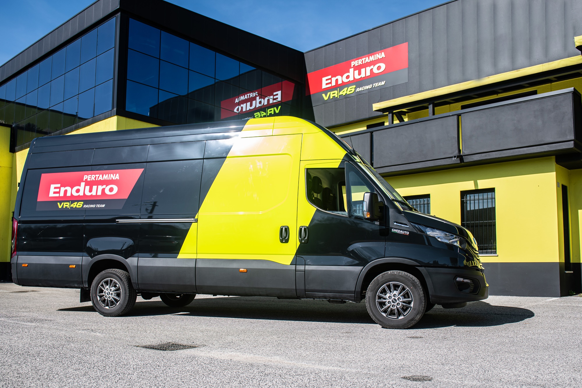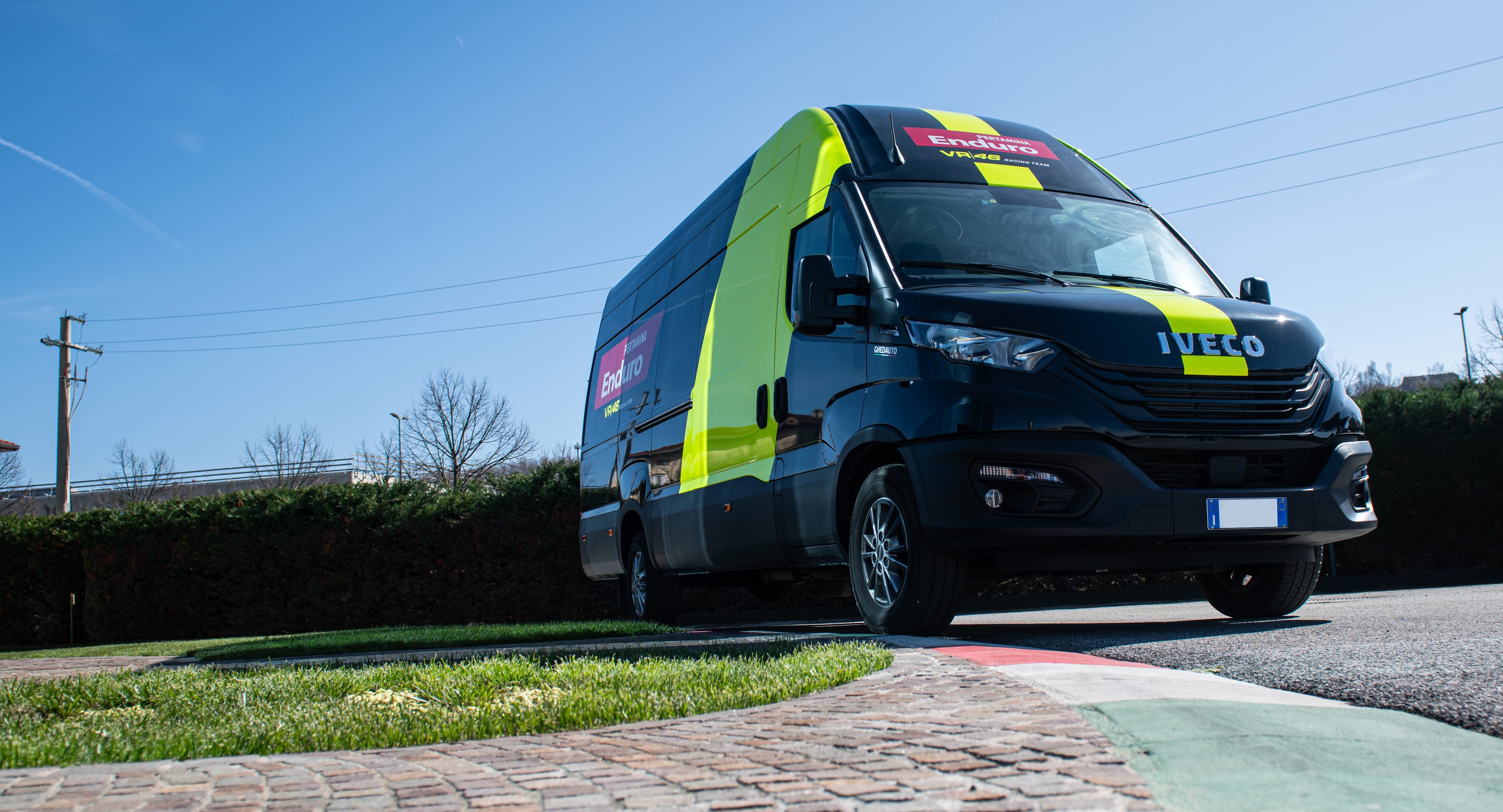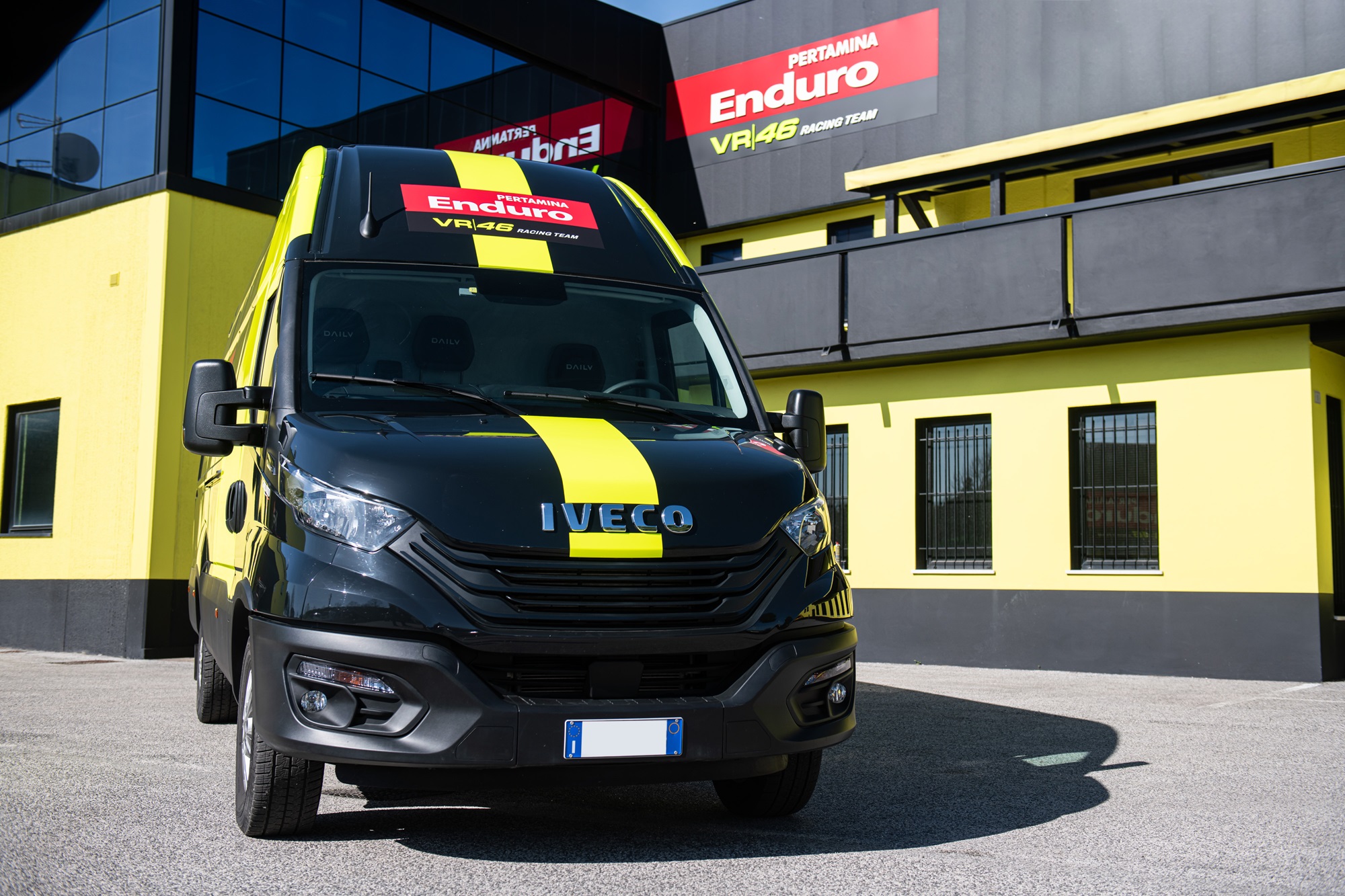Il Daily, un 35S16A8 V, dotato di cambio Hi-Matic, presenta la caratteristica livrea del Pertamina Enduro VR46 Racing Team. Il furgone accompagnerà il team sulle piste del Campionato del Mondo MotoGP che quest’anno concorre con i piloti Marco Bezzecchi e Fabio Di Giannantonio.