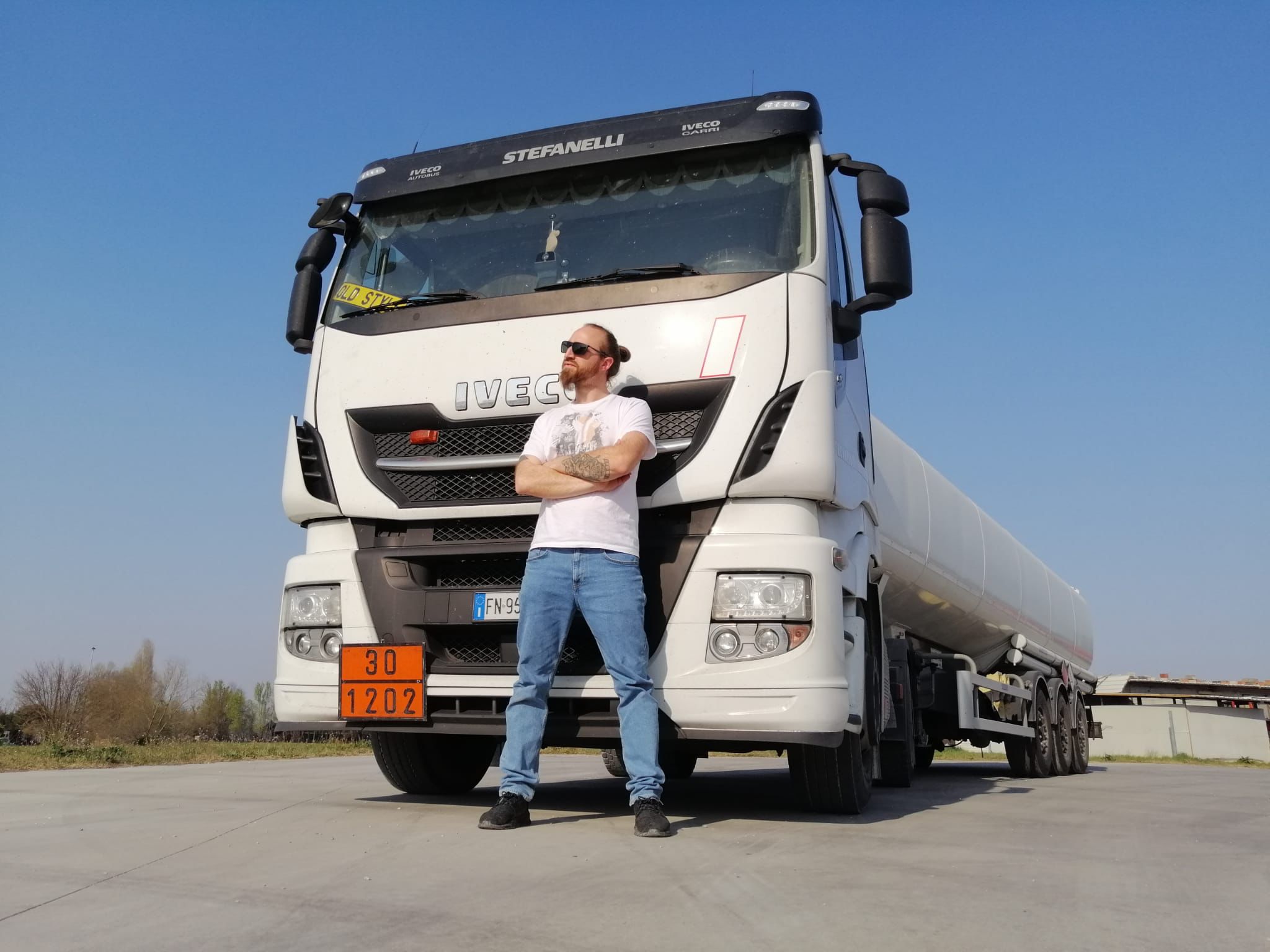 Certamente questo è un mestiere che si fa per passione. O ce l’hai, o è meglio che lasci perdere. Io iniziai a lavorare appena prese le patenti nel 2012 come autista dipendente. Nel corso del tempo son passato dal centinato alla cisterna. Oggi guido per un’azienda a conduzione familiare che fa trasporti e commercio di prodotti petroliferi. Sono alle loro dipendenze da più di quattro anni e mezzo e direi di aver trovato il giusto luogo con il giusto equilibrio.