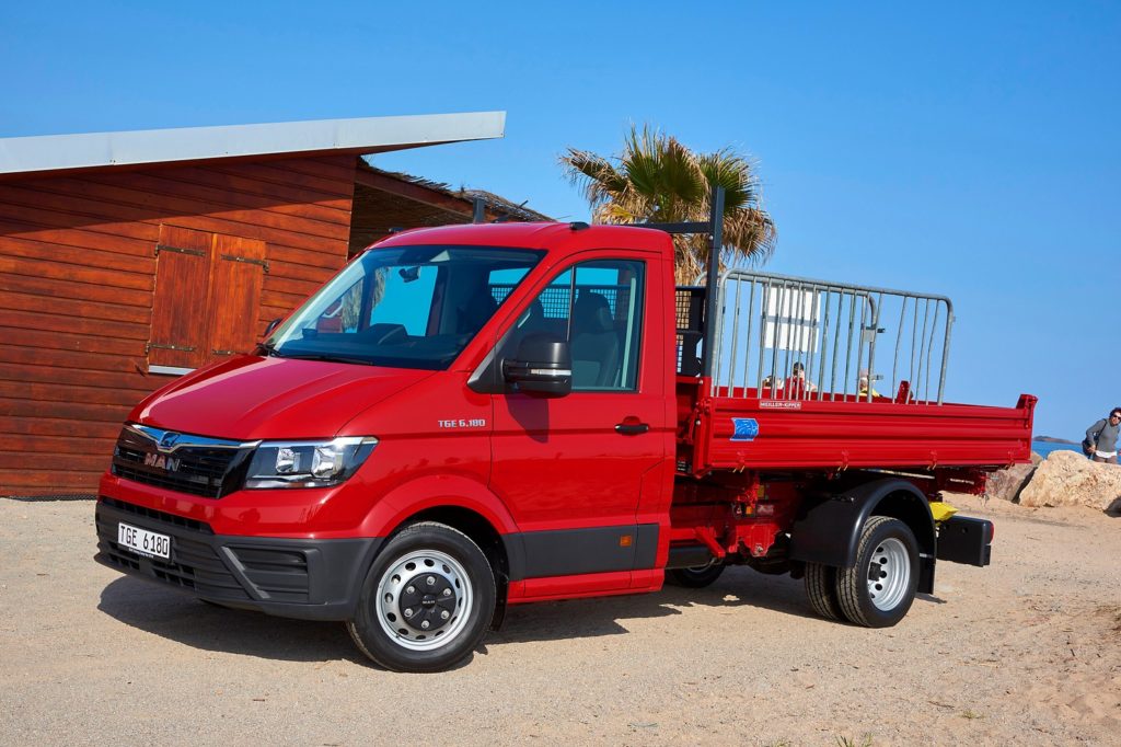 - TGE 6.180 4×2 allestito con cassone ribaltabile trilaterale, cabina singola e asse posteriore con ruote gemellate;