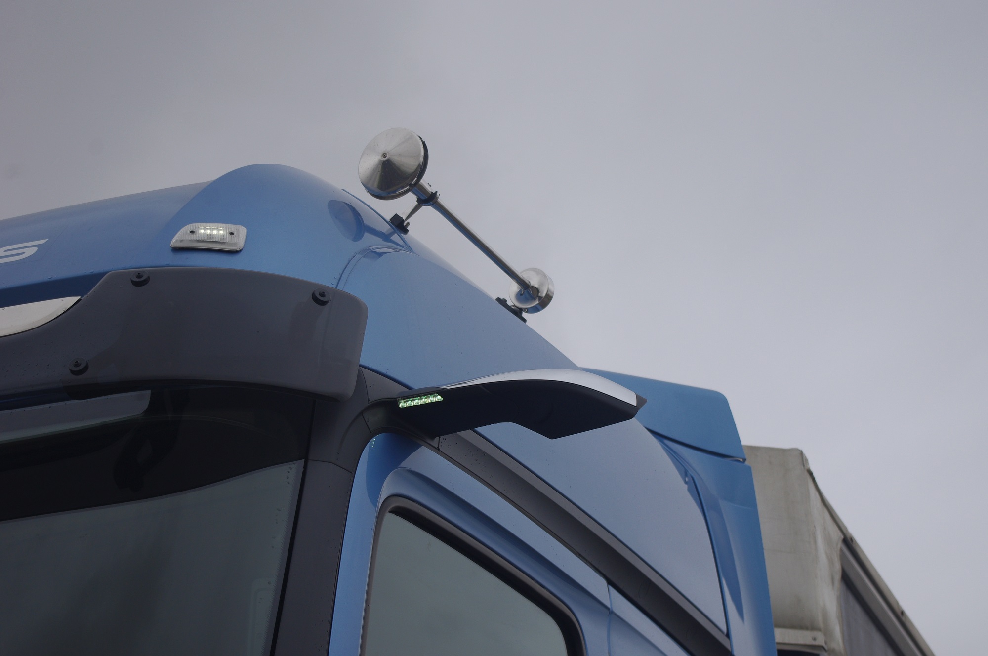 L’Actros affidatoci per la prova da Mercedes-Benz Trucks Italia è fermo in un parcheggio di Milanofiori. Bella la livrea azzurro cielo meallizzato con grafiche bianche che riportano tutte le nuove funzionalità del truck su una costellazione come sfondo. Chiaramente si tratta di un veiclo dimostrativo. Purtroppo le condizioni meteo non sono delle più favorevoli. Roberto Spelta, responsabile dei corsi di formazione “Truck training” di Mercedes-Benz Trucks Italia, scende dalla cabina e ci viene incontro sotto un diluvio universale. Enrambe siamo determinati a portare avanti la prova. Quindi ci guardiamo, facciamo spallucce, scoppiamo in una risata e saliamo in cabina. Dopo un rapido controllo al meteo scegliamo di dirigerci verso Novara. Sembra che là sia solo nuvolo.