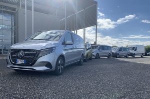 Ancor prima della presentazione del nuovo corso per venditori, ci è stata data l’opportunità di provare tutti i nuovi Van elettrici stellati sulle strade che da Roma nord conducono all’Autodromo di Vallelunga e ritorno. Per la precisione abbiamo guidato un eVito Furgone, un eVito Tourer, un eSprinter, un EQV ed un nuovissimo EQT, versione elettrica della Classe T.