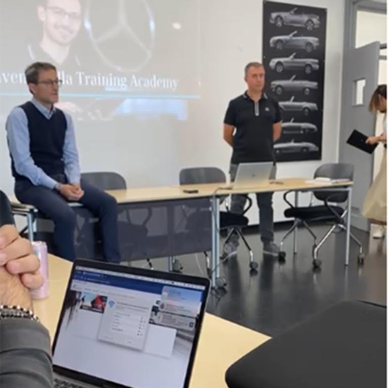 Nello specifico i corsi sono spalmati in due giorni e si focalizzano principalmente su: test drive con veicoli elettrici della Casa e veicoli elettrici della concorrenza, per valutare le differenze; strategie di vendita e marketing; illustrazione tecnica dei veicoli commerciali elettrici Mercedes-Benz; offerte finanziarie Merfina; trattamento dell’usato vans.