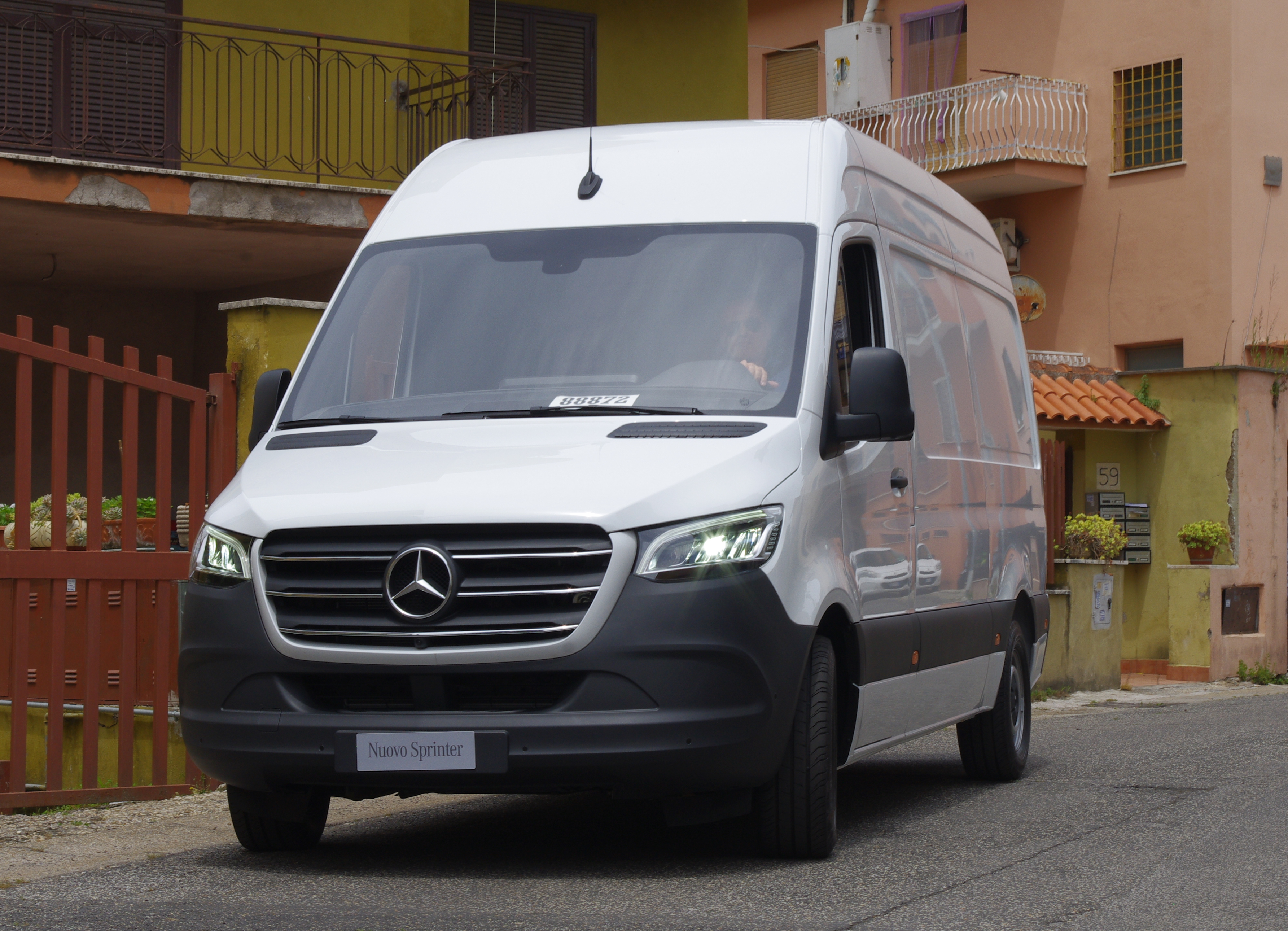 Esternamente, a prima vista, le differenze tra la vecchia e la nuova generazione di Sprinter non sono moltissime. I designer della Casa di Stoccarda si sono concentrati soprattutto sul frontale che risulta decisamente più alto con nuovi gruppi ottici più stretti ad andamento obliquo, un cofano più bombato e un fascione paraurti più alto e avvolgente.