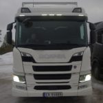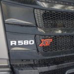 Il secondo veicolo che proviamo è un trattore a tre assi 580 S. Attenzione alla nomenclatura: se notate bene la S si è spostata dopo i CV, infatti recentemente Scania si è accordata con Daimler AG, cambiando la nomenclatura dei propri truck serie S, per non creare confusione con alcuni modelli di auto Mercedes-Benz. Il trattore che andiamo a provare è un 6×2 con sistema di sospensioni pneumatiche integrale, agganciato a un semirimorchio che, grazie a un dolly (carrello con timone e ralla per semirimorchio) a due assi, traina un altro semirimorchio con agganciato a un terzo asse sterzante, entrambe allestiti con casse isotermiche VAK.