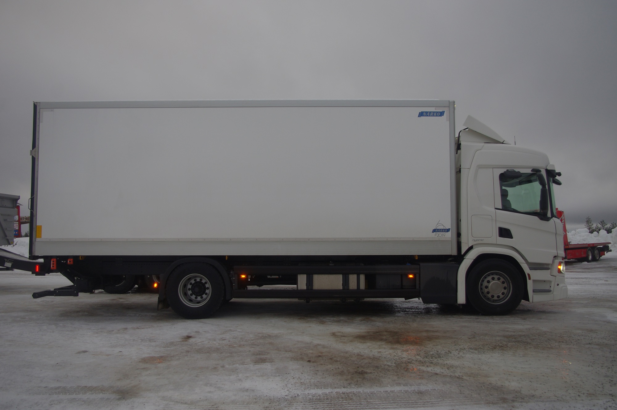 Infine arriva il turno dell’Hybrid. Una presenza sorprendente per noi “Tommasi” a queste latitudini con queste temperature. L’autocarro è un P 320 4×2 da distribuzione urbana, allestito con furgonatura coibentata Närko e sponda montacarichi Zepro. Saliti a bordo prendiamo posto sul sedile di guida pneumatico.