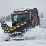 La gamma XT, destinata principalmente alle attività off-road (cava e cantiere, foreste, etc.) grazie al paraurti sporgente, skid plate e griglie protettive ha una aspetto decisamente “muscoloso”. Si vede che è un veicolo progettato per il lavoro duro. Togliamo il freno di stazionamento e, girando il cursore su Drive, diamo gas. Il poderoso V8 ronfa sotto la cabina. Procediamo con cautela. La stradina ricavata in mezzo a mucchi di neve alti più di un metro è veramente stretta. Julianne ci esorta ad accelerare per superare un dosso gelato. Ok, premiamo con delicatezza il pedale dell’acceleratore, il “vulu-vulu” del V8 prende consistenza inebriandoci lo spirito ed infondendoci coraggio. Superiamo l’ostacolo senza difficoltà. Pochi centimetri ci separano dai muretti ghiacciati, tuttavia la manovrabilità dell’XT è formidabile e riusciamo a passare senza combinare guai.