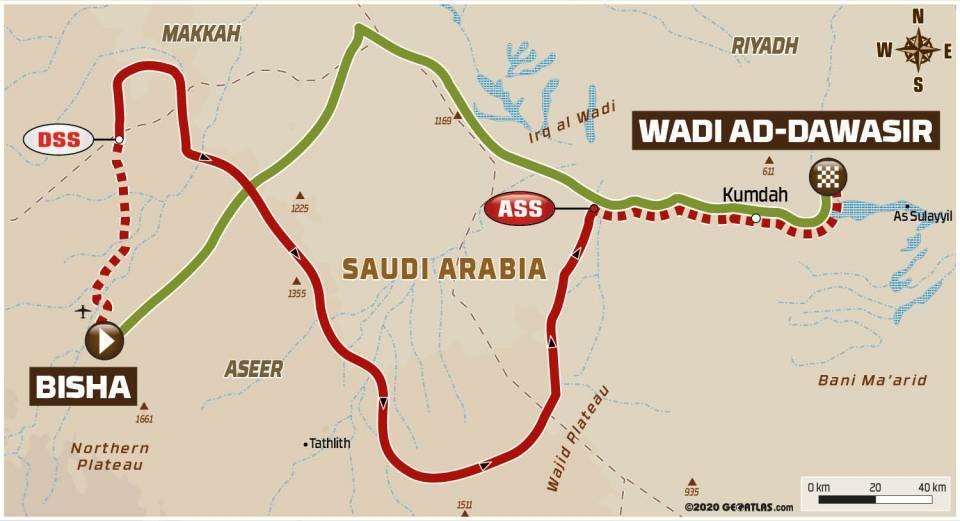 I concorrenti quest’oggi si sono trovati immersi in un paesaggio completamente diverso: lasciando Bisha al posto delle piste pietrose, che hanno messo a dura prova nervi e pneumatici, i piloti si sono trovati, viaggiando verso ovest in direzione Wadi Ad Dawasir, ad attraversare altipiani sabbiosi dove regnano dune sferzate dal vento. Qui la differenza la fa l’esperienza.