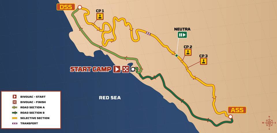 La prima parte della tappa ha portato i piloti su un terreno roccioso con tratti stretti dove il rischio di forature era elevato. A metà della prova speciale, c’era un pit stop per riparare eventuali danni. Nella parte finale della prima tappa, il percorso è diventato più sabbioso con tratti veloci e alcune piccole dune. Dopo la prova speciale, i piloti sono tornati al bivacco di Yanbu, dove inizierà la seconda tappa. La distanza piuttosto modesta non riflette appieno la grande varietà del terreno di questa prova.