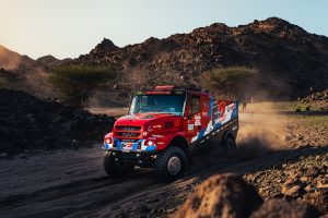 Il ceco Ale Loprais #602 ha concluso con poco meno di due minuti di vantaggio sull’olandese Mitchel van den Brink #601 durante una prima tappa estenuante attorno alla città portuale di Yanbu. Il compagno di squadra Vaidotas Žala #604 è arrivato quarto, a 7:32 da Loprais. In terza posizione si è piazzato il campione in carica Martin Macik #600 che, sornione, aspetta il momento buono per affondare i suoi artigli e prendere il comando della corsa. In quinta posizione troviamo gli agguerritissimi pompieri della Dakar, capeggiati dal veterano Richard De Groot #607 alla sua 13ma Dakar.