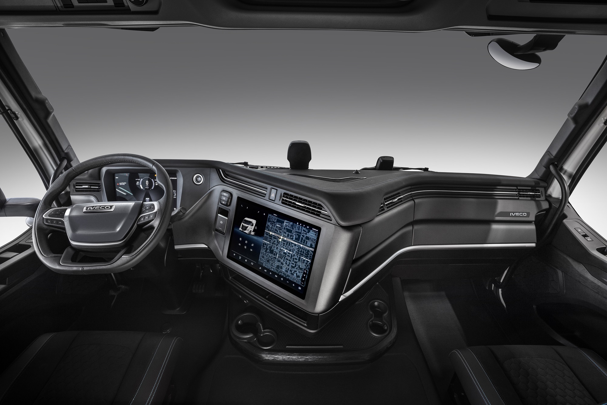 La cabina, estremamente ergonomica e spaziosa, include ampi vani portaoggetti e numerose funzioni altamente tecnologiche come: l’ampio display digitale da 12,8 pollici, studiato per mostrare solamente le informazioni più rilevanti, al fine di ridurre il carico cognitivo del conducente; lo schermo da 17 pollici del sistema di infotainment offre un’interfaccia ricca di funzioni e di facile navigazione grazie alle icone più grandi; il sistema di navigazione specificamente studiato per i mezzi pesanti mostra le restrizioni agli itinerari in base a peso del rimorchio, dimensione del carico e classificazione in termini di materiali pericolosi.