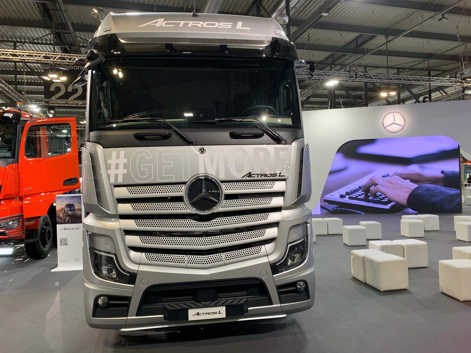 Un po’ defilati rispetto ai protagonisti del nuovo futuro elettrico troviamo un Mercedes-Benz Actros L. Il truck destinato alle lunghe distanze, del quale abbiamo già ampiamente parlato, viene mosso dal motore OM471 di terza generazione che consente di risparmiare carburante fino al 4% rispetto ai modelli precedenti.