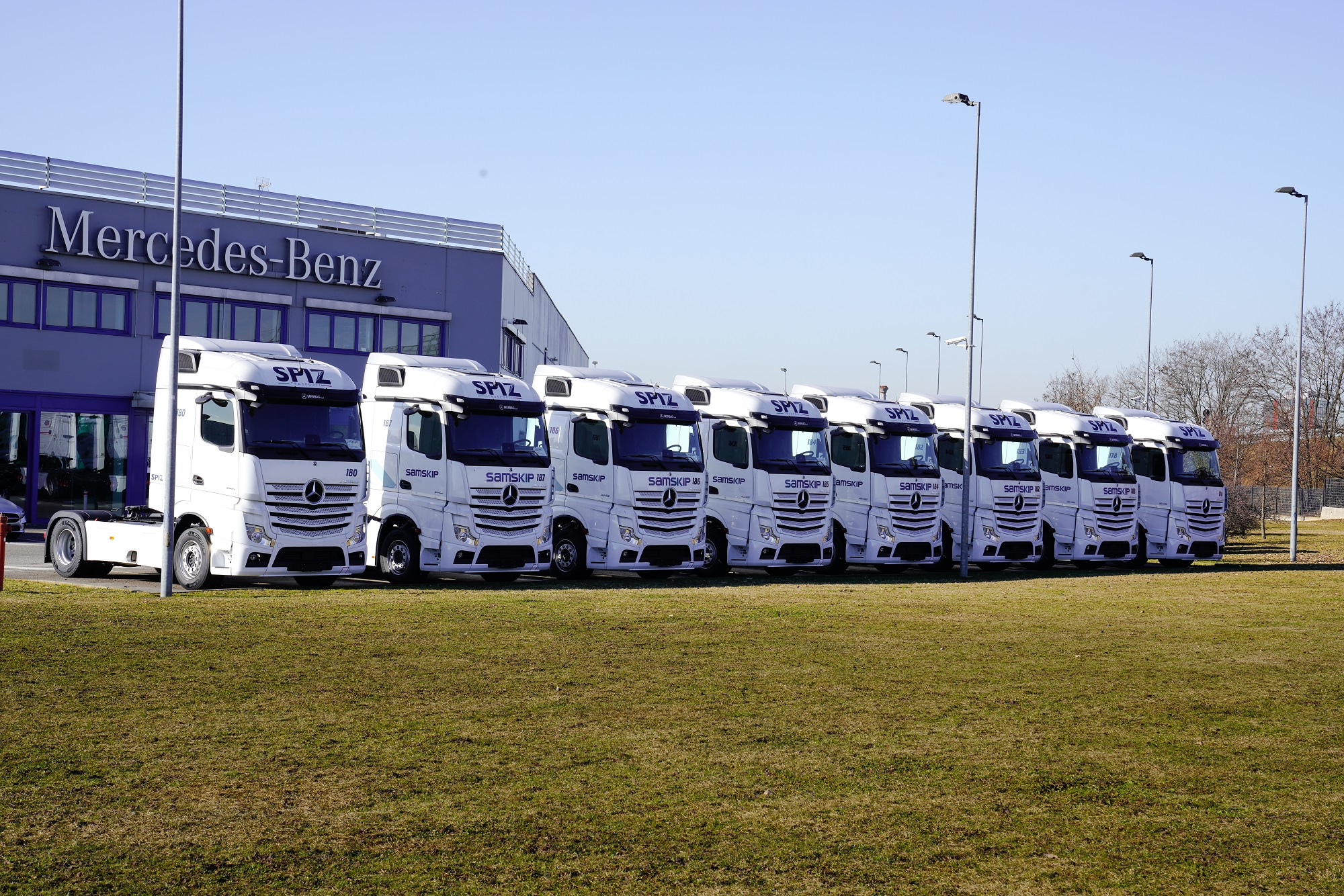 I veicoli, 10 nuovi Actros 1845 equipaggiati con motori Euro 6d ad alte prestazioni, sia in termini di consumi che in termini di emissioni, sono stati selezionati dalla Spiz Trasporti in virtù dei loro alti contenuti tecnologici atti a garantire sicurezza ed efficienza.