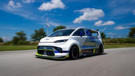 2000 CV elettrici consentono a questo concept vehicle a emissioni zero, ispirato al nuovo E-Transit Custom, di accelerare da 0 a 100 km/h in meno