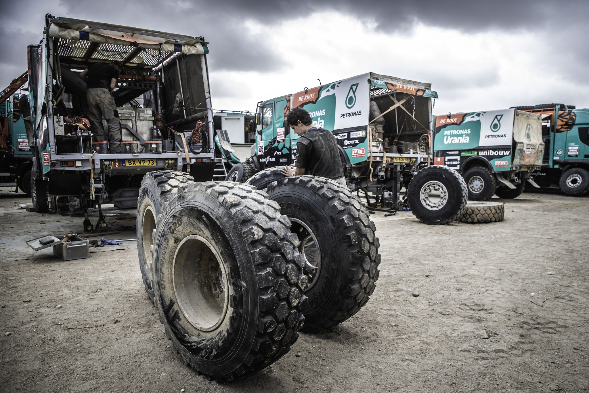 Oltre al team vincente Kamaz-Master, anche i team Petronas De Rooy IVECO e Mammoet De Rooy IVECO, tutti nella top ten, montano pneumatici Goodyear A