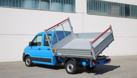 L’innovativo allestimento di Onnicar-Gruau propone un furgone del “Leone rampante” con sponda caricatrice posteriore a chiusura del vano di carico I portelloni posteriori a battente