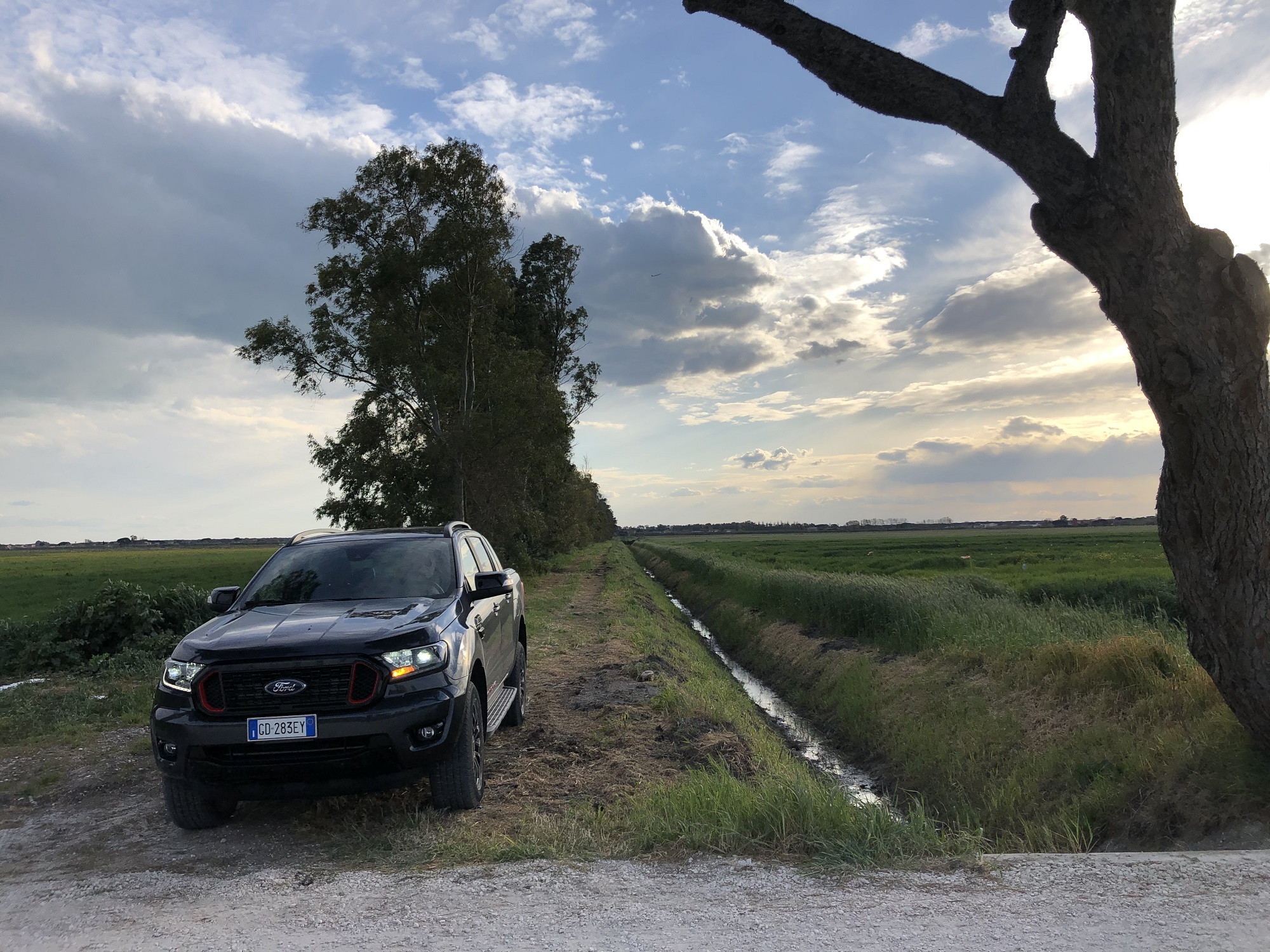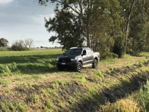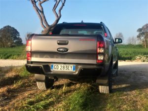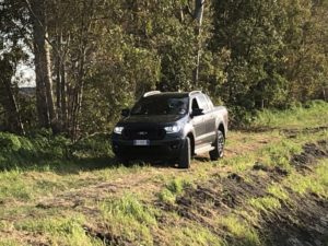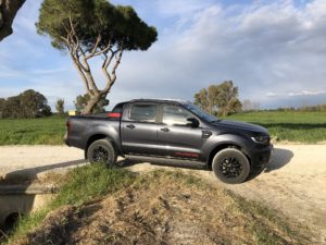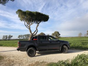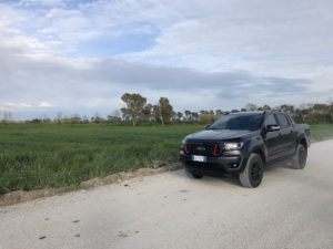 Mettiamo in moto tramite il pulsante start/stop. Il potente 4 cilindri Diesel Euro6 di 2.0 litri, Bi-Turbo EcoBlue da 213CV e 500 Nm di coppia si fa sentire con un ringhio felino ma non invadente all’interno dell’abitacolo. I giri salgono rapidamente seguendo perfettamente il ritmo impresso dal piede destro sul pedale dell’acceleratore. Ricordiamo che questo motore sostituisce il precedente 5 cilindri Diesel di 3,2 litri che equipaggiava la serie precedente del Ranger. Nonostante il drastico downsizing (- 1.200 cc) il nuovo 2 litri supera come prestazioni il vecchio motore che vantava 200 CV di potenza e 470 Nm di coppia, consumando fino al 9% in meno. Piuttosto limitati nella circolazione a causa delle restrizioni regionali dovuti alla “pandemia” andiamo a cercare le “praterie del Wyoming” nei dintorni di Roma per sciogliere le briglie del nostro purosangue. Incredibilmente le troviamo nelle campagne che circondano l’aeroporto di Fiumicino. Prima di far toccare lo sterrato alle ruote del nostro bel pick-up, percorriamo il tratto autostradale che collega Roma con l’aeroporto.