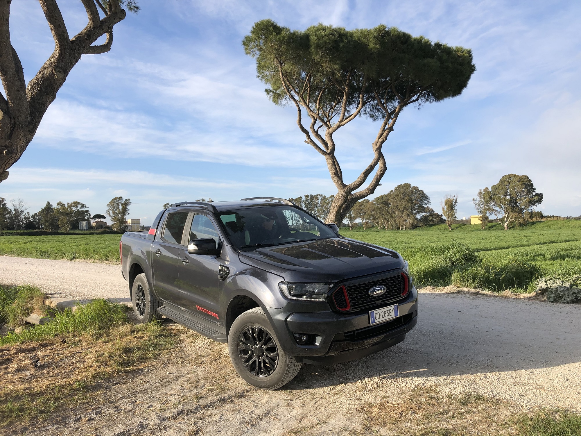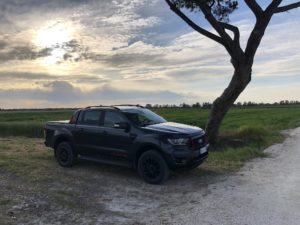 Questa autostrada, regno degli NCC, viene generalmente percorsa con una certa fretta. Pertanto appena un autista in berlina nera si trova davanti un pick-up che, seppur bello, rappresenta sempre una specie di camioncino, avvia un isterico gioco di luci stroboscopiche che si riflette sul nostro specchietto retrovisore. Basta spostare la leva del cambio automatico su la “S” (modalità Sport), dare una pelatina all’acceleratore e la berlinona nera inizia a rimpicciolirsi sempre di più nello specchietto retrovisore. Usciamo all’altezza di Commercity e ci dirigiamo verso il mare. Prendiamo la via Portuense in direzione Fregene. Il Thunder su strada si comporta benissimo. Non fosse per l’altezza, sembrerebbe di stare alla guida di un’auto sportiva. Ottima tenuta di strada, motore elastico e generoso. Il cambio automatico a 10 rapporti seleziona la marcia ottimale in qualsiasi situazione senza esitazioni.