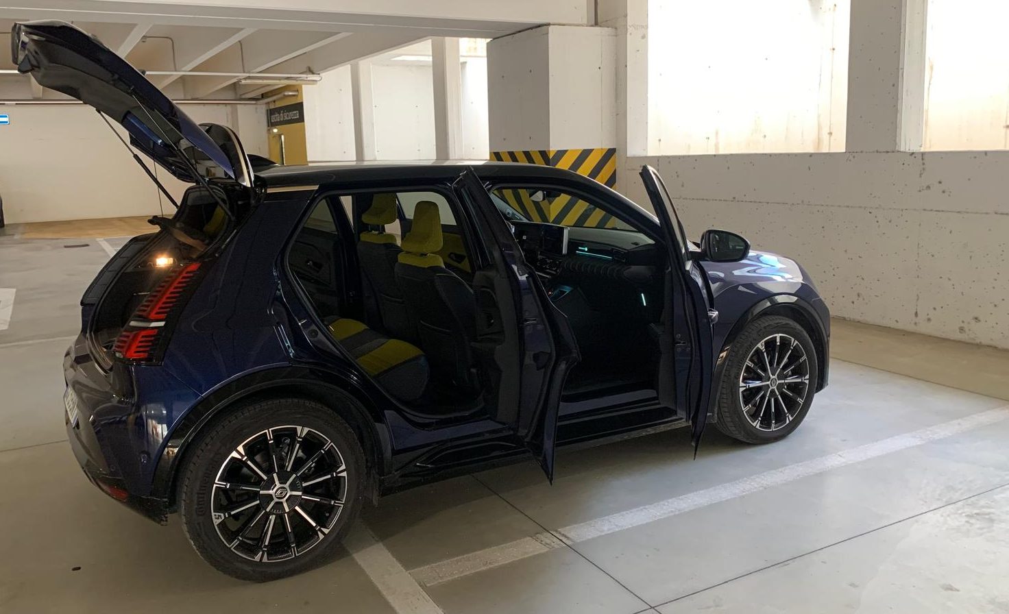 Speravamo ci venisse consegnato un’esemplare GIALLO POP (la nuova colorazione di lancio), in realtà ci è capitata un’elegante livrea bicolore: carrozzeria BLEU NUIT con tetto ÉTOILE NOIRE. Le dimensioni esterne compatte (lunghezza 392 cm, altezza 150 cm, larghezza 177 cm, passo 254 cm) grazie all’adozione della piattaforma Renault AmpR Small, progettata per veicoli elettrici compatti, la rendono l’ideale per gli spostamenti in città.