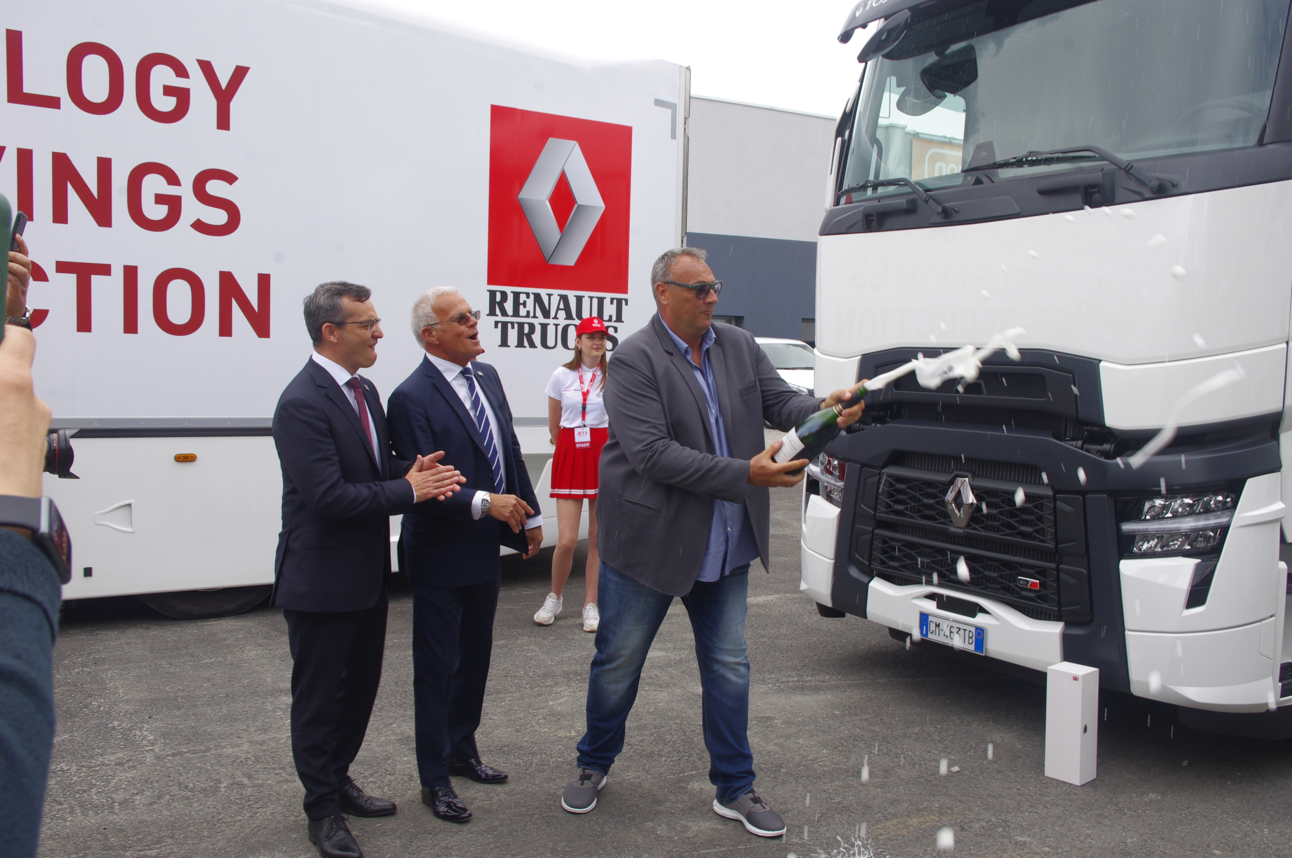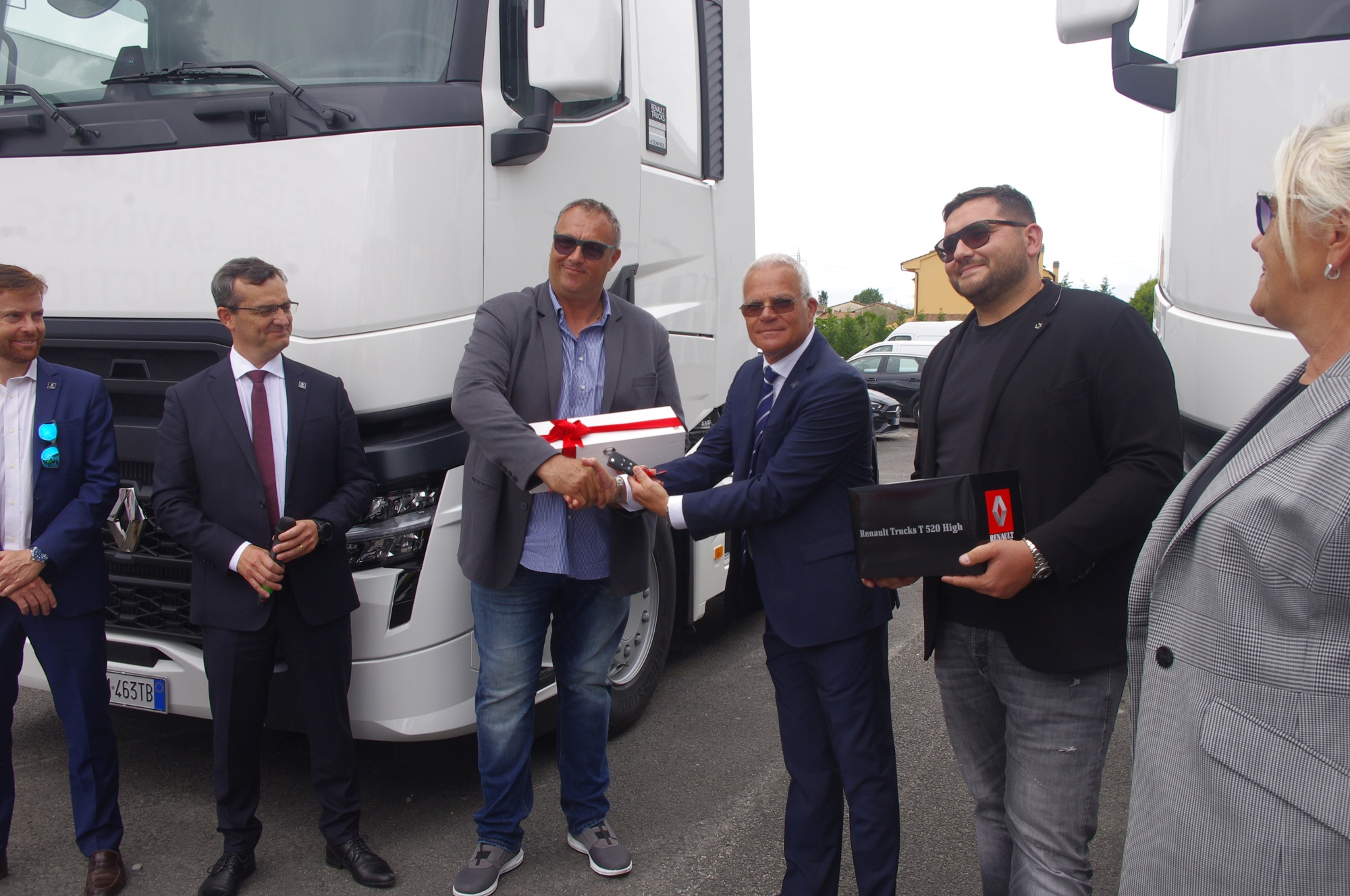 L’azienda, fondata 40 anni fa dal papà di Massimiliano, all’epoca padroncino monoveicolare, iscritto a una cooperativa, è cresciuta in maniera esponenziale. Oggi presso la M&M sono occupate 70 persone, il parco veicolare conta più di 50 veicoli. Inoltre, a breve, si arricchirà di un altro Renault Trucks T 480 SC Evolution che verrà consegnato sempre dalla Toscana Trucks. Alla cerimonia dello scambio delle chiavi, oltre che i titolari dell’azienda Massimiliano e Marcello Rossi, hanno partecipato Giuliano Taverni e lo stesso A.D. di Renault Trucks Italia, Pierre Sirolli, sotto una pioggia di champagne francese offerto dal brand.