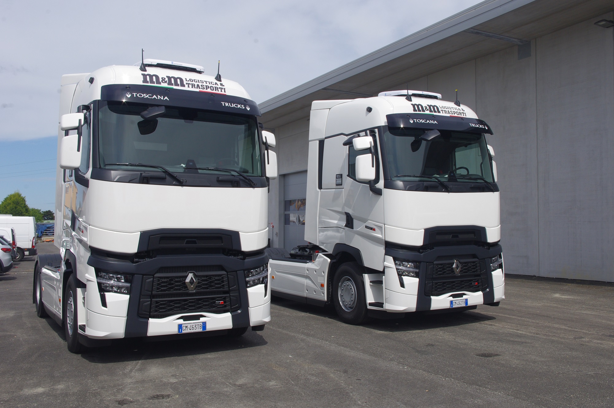 Durante la giornata di festa alla concessionaria Renault Trucks, tanto per non perdere tempo, sono stati consegnati due nuovi T High 480 Turbo Compound all’azienda livornese M&M Logistica e Trasporti di Massimiliano e Marcello Rossi, rispettivamente padre e figlio.