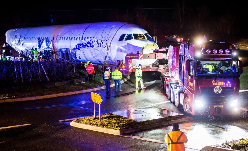 Per essere trasportato, l’aereo è stato privato di ali e piani di coda. L’ingombrante fusoliera (lunghezza 60 m, larghezza 5m, peso 90 t) è stata caricata su un Actros SLT da 630 CV della ditta PAULE (azienda specializzata in trasporti pesanti con sede a Stoccarda) incarcata del trasporto. Il viaggio da Tallin a Calw ha richiesto 11 giorni.