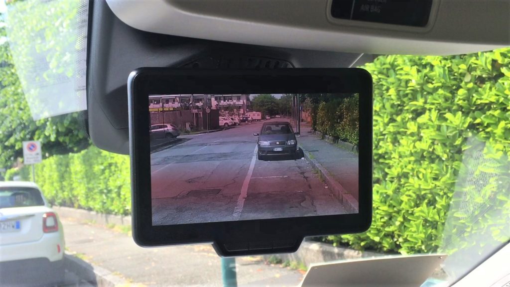 Una volta a bordo, perdiamo 5 minuti nel valutare ed osservare tutto quello che ci circonda. Lo sguardo, come una calamita viene subito attirato dal grande schermo da 7” che sostituisce lo specchietto retrovisore interno, il Rear View Assist che rimanda le immagini riprese dalla telecamerina posizionata sopra alle porte posteriori. Troviamo che per i veicoli lastrati sia una soluzione geniale. Non solo hai una visione molto più ampia e nitida di quello che accade dietro al veicolo sia in marcia che in manovra, ma soprattutto: hai una visione!