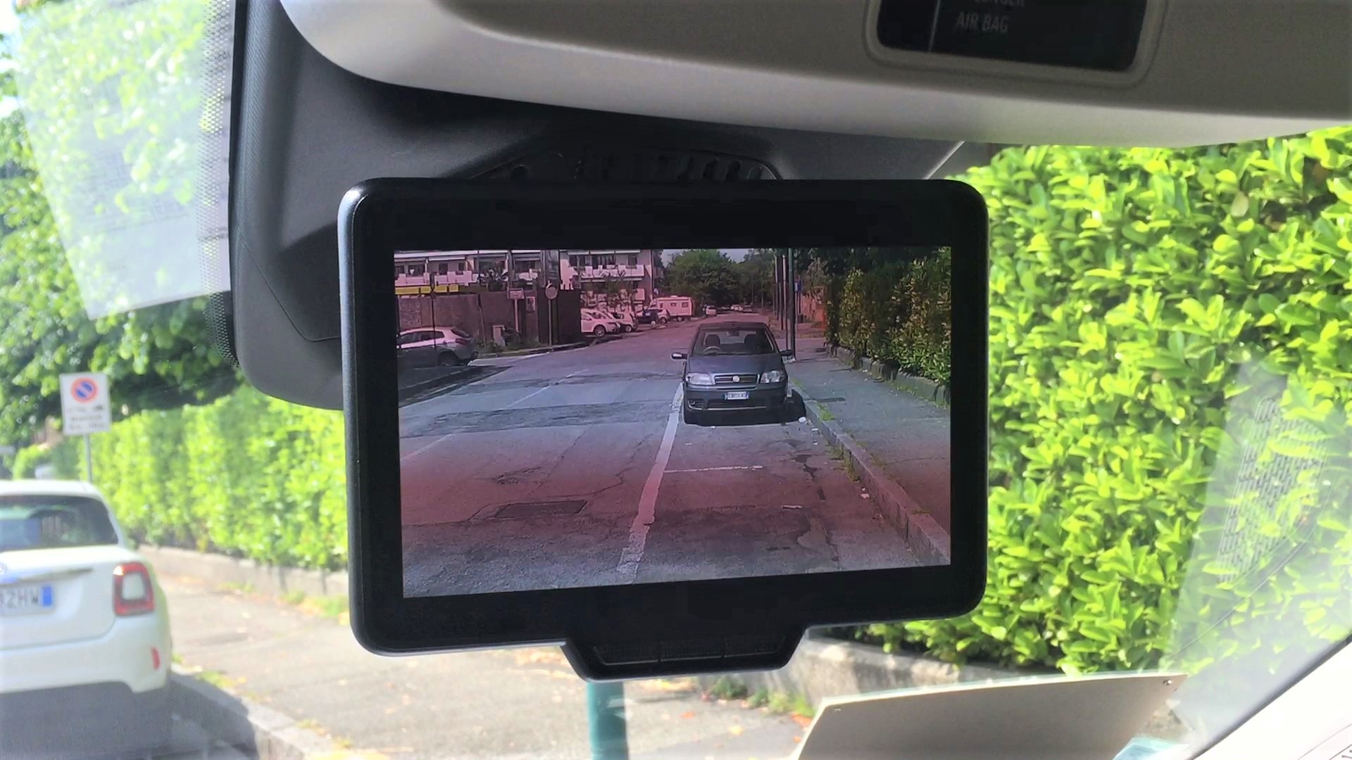 Ormai è tempo di tornare. Una volta dentro l’area di “Carroponte” per allineare perfettamente la nostra furgonetta agli altri veicoli parcheggiati utilizziamo anche lo specchietto grandangolare Wide View Mirror applicato sull’aletta parasole, lato passegero, molto utile per rendere visibile il famoso angolo cieco. A malincuore lasciamo la nostra postazione.