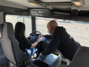 “Un camion per  scuola guida deve  essere un veicolo dedicato – prosegue Biella – quindi doppi comandi, nel nostro caso solo il pedale del freno, e poi abbiamo   voluto la cabina doppia così durante le sessioni d’esame l’ingegnere può seguire la guida con più agio. Gli allievi che avevano fatto le prime guide con il veicolo vecchio e ora stanno proseguendo con il MAN TGL sono addirittura entusiasti ed  è facile capire perché. Ma in realtà la nostra scelta ha altri vantaggi che ritengo  anche più importanti. Scegliendo un veicolo di ultima generazione si ha l’opportunità, non solo di insegnare a guidare un camion, ma farlo spiegando  come sfruttare al meglio tutte le nuove tecnologie per risparmiare carburante e rendere la guida meno stressante ma allo stesso tempo più sicura. In altre parole una sorta di master!”