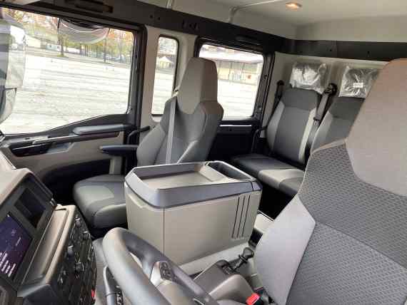 Le sospensioni sono meccaniche sull’asse anteriore e pneumatiche su quello posteriore. I freni sono a disco su entrambe gli assi. Le dotazioni di sicurezza comprendono sistema frenante elettronico EBS, ABS, assistente alla frenata d’emergenza EBA, freno motore elettronico MAN EVBec, controllo elettronico  della stabilità ESP, ASR, MAN EasyStart, avviso di allontanamento dalla corsia di marcia Lane Departure Warning e RIO Box, il modulo telematico di bordo originale MAN di terza generazione installato nel veicolo per l’utilizzo dei servizi digitali MAN DigitalServices / RIO Services. L’allestimento  prevede anche un  cassone centinato  con  la  zavorra, come prescritto dalla legge per i veicoli destinati alla scuola guida, e il gancio di traino per il rimorchio.