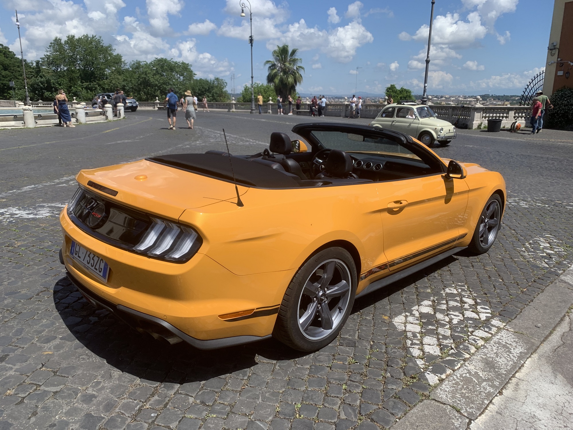 Ma, no, no, con una Mustang California Special GT Spider gialla, bisogna fare per forza i “coatti”, quindi cappellino da baseball (per non scottarsi la pelata) con la visiera spostata all’indietro tipo Chad Smith dei Red Hot Chili Peppers, e via a californicare sul litorale romano.