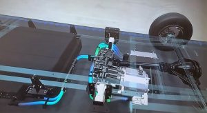 Un corto albero di trasmissione collega la Transfer Box (quello che normalmente sarebbe il cambio – ndr) posta all’uscita del motore elettrico, al differenziale che è lo stesso utilizzato per i veicoli a trazione termica. I rapporti al ponte possono variare da 3,6 a 4,44 nelle versioni 50C o da 4,3 a 5,13 nelle versioni 72C al fine di ottimizzare le prestazioni o l’efficienza.